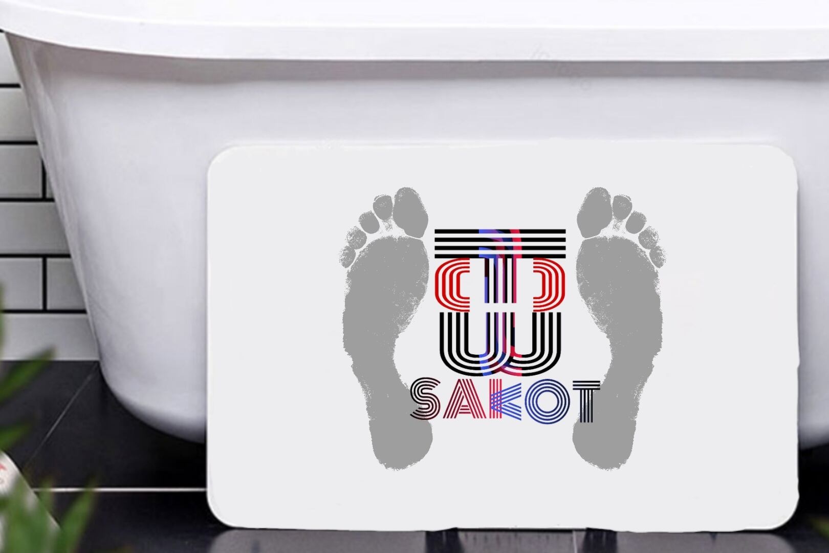 SAKO.T/サコティロゴマークの両脇には人間の足型をデザインし、お風呂上がりに思わず自分の足を合わせたくなるようなユニークなデザインの一品。