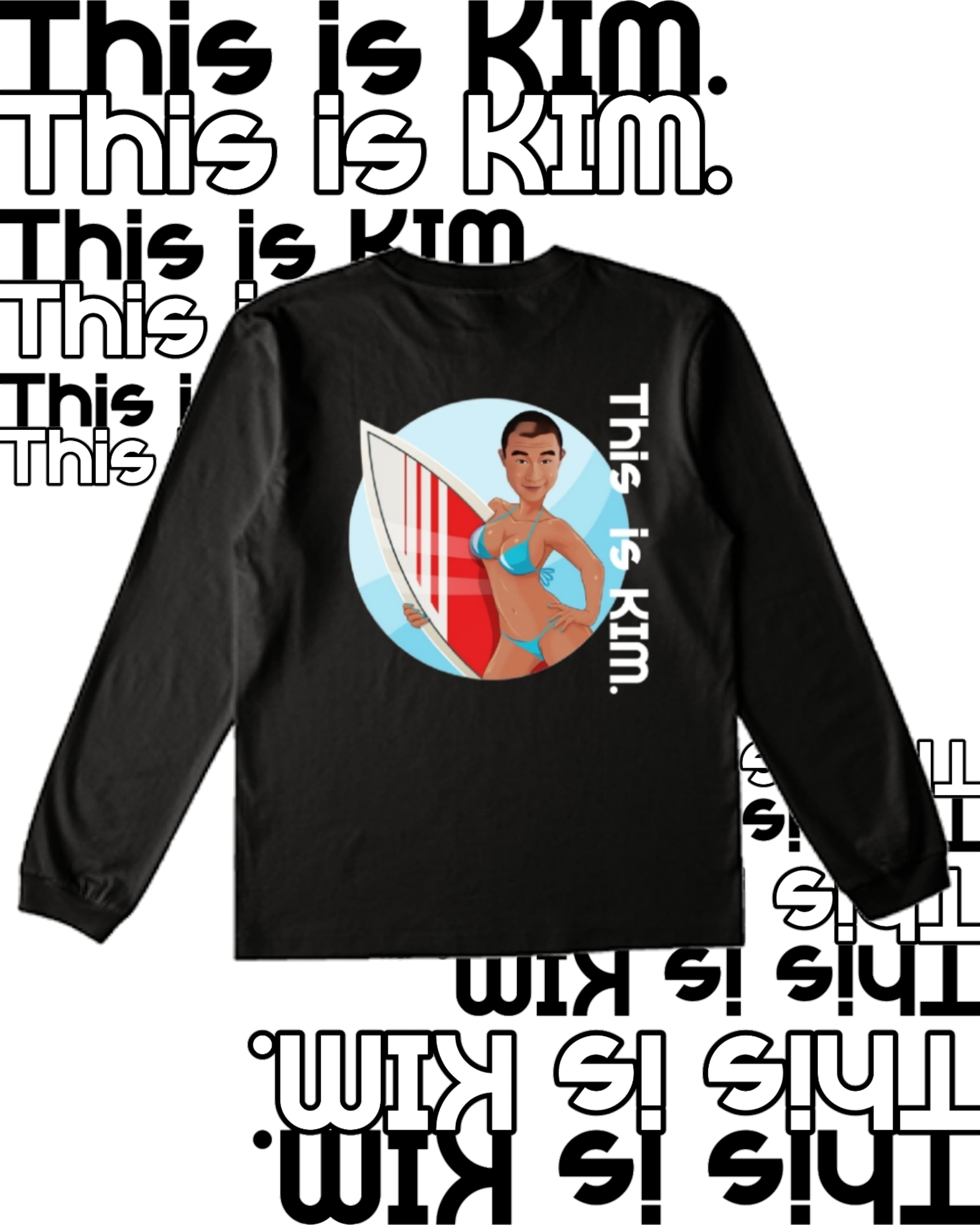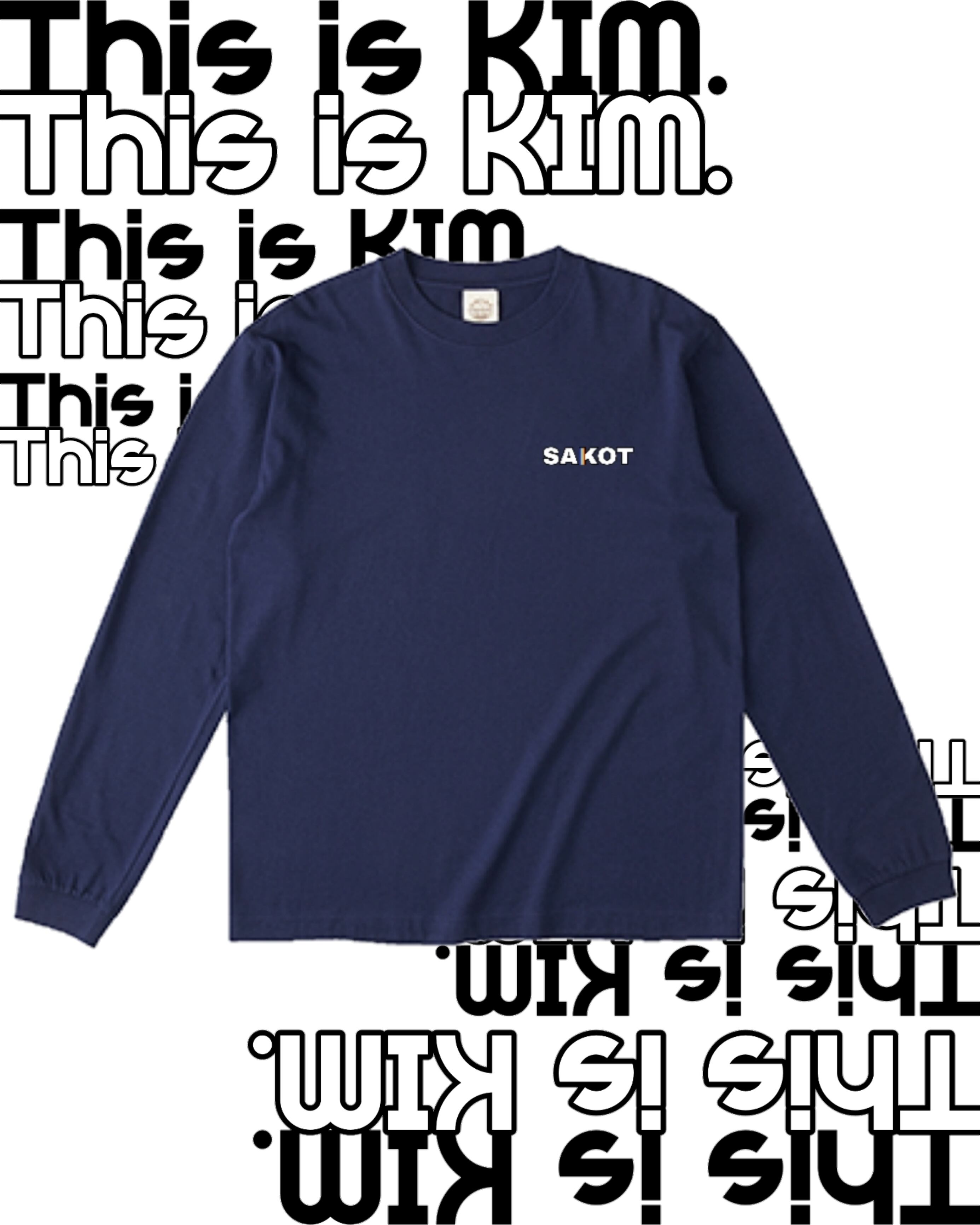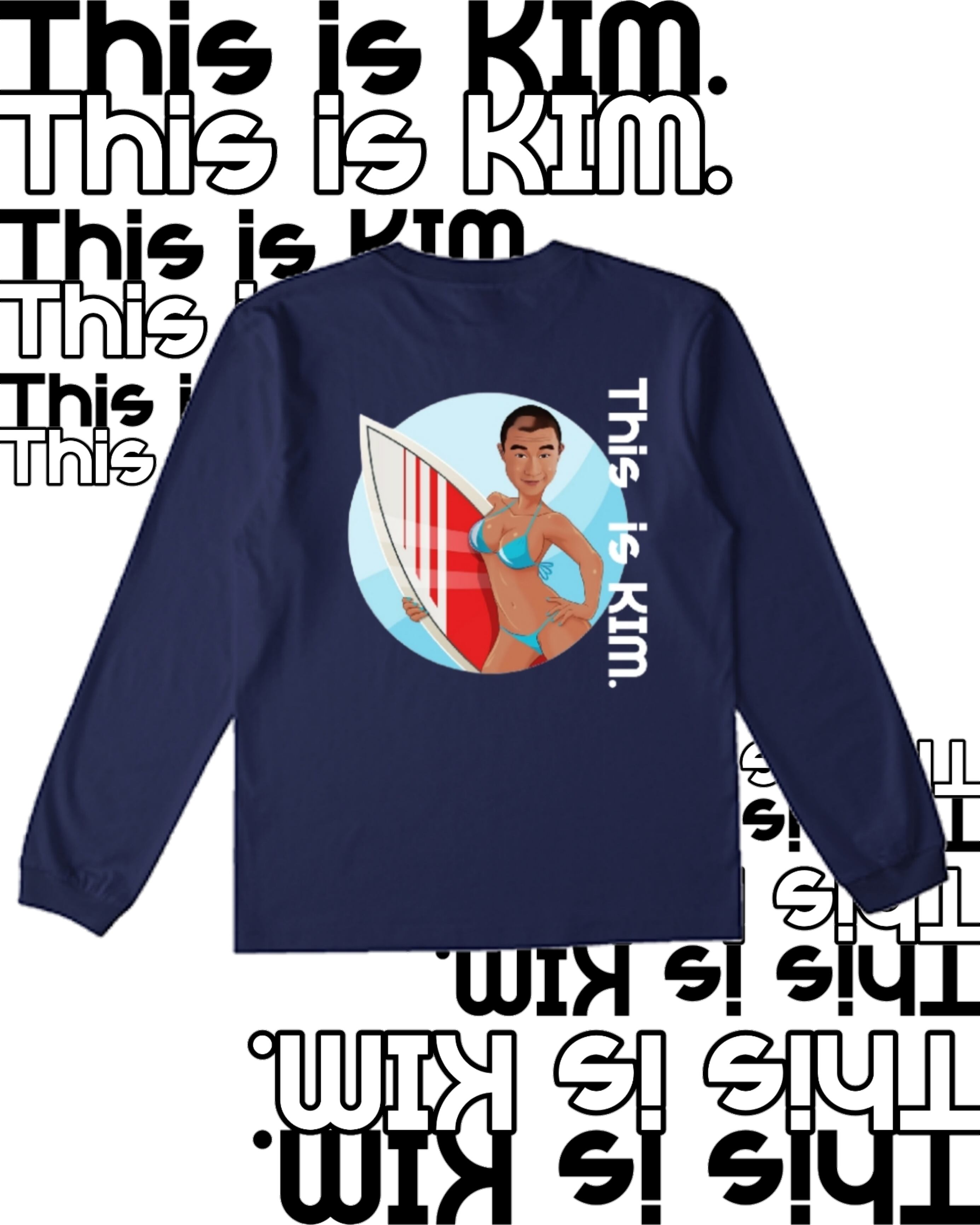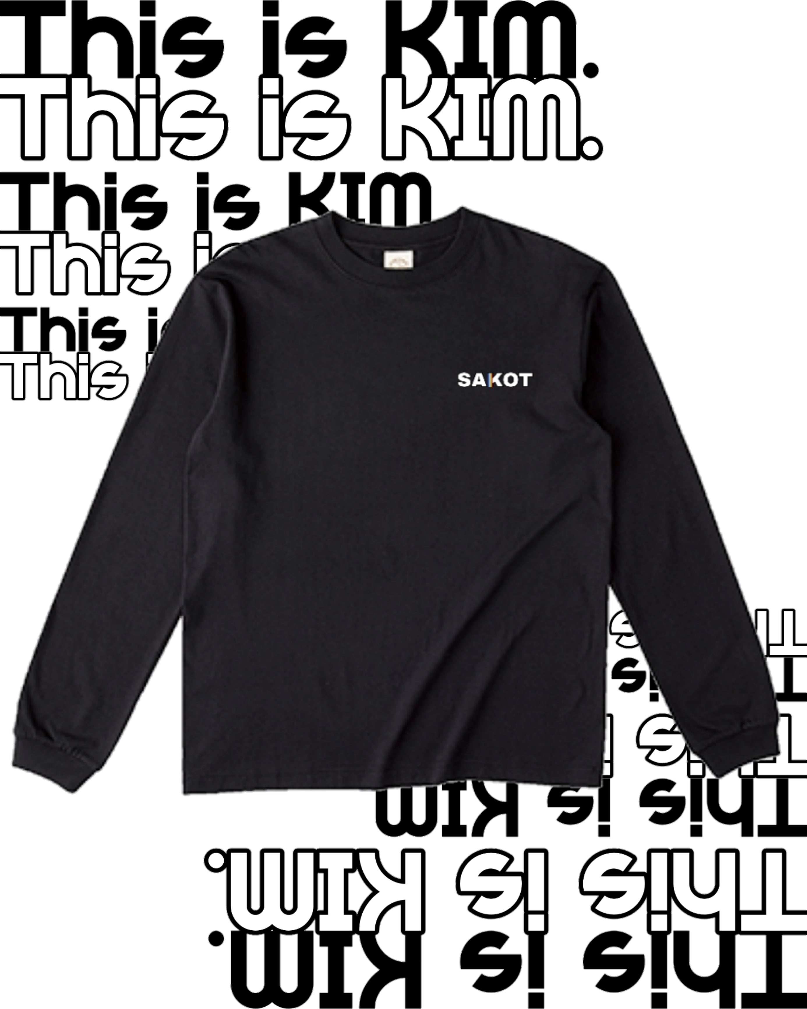 背面にはThis is KIM.のユニークなデザインが施された一着。