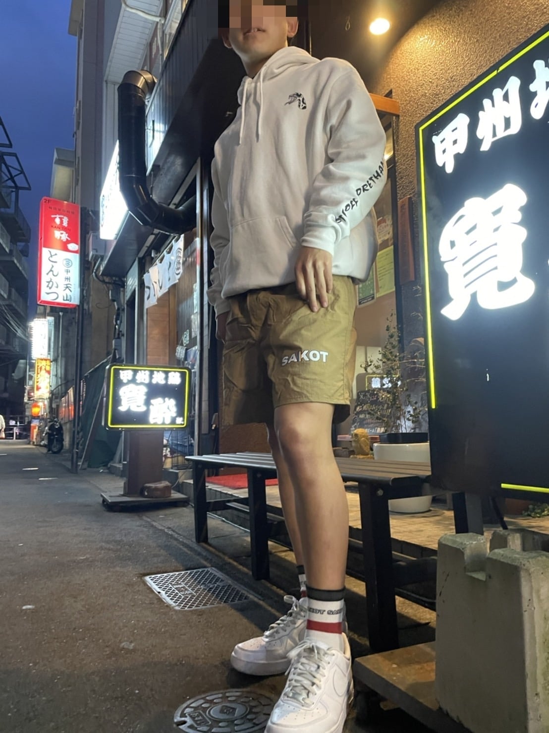 左前腿部分に大胆にSAKO.T/サコティフォントをプリントし控えめに目を引く一着。